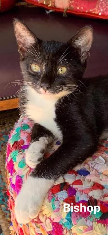 Bishop is a gentle little fellow who loves playing with his sibling kitties. He is a very handsome gentleman who likes the quiet life and prefers to be around you, rather than all over you. He has become accustomed to his canine siblings, but has met young children yet.