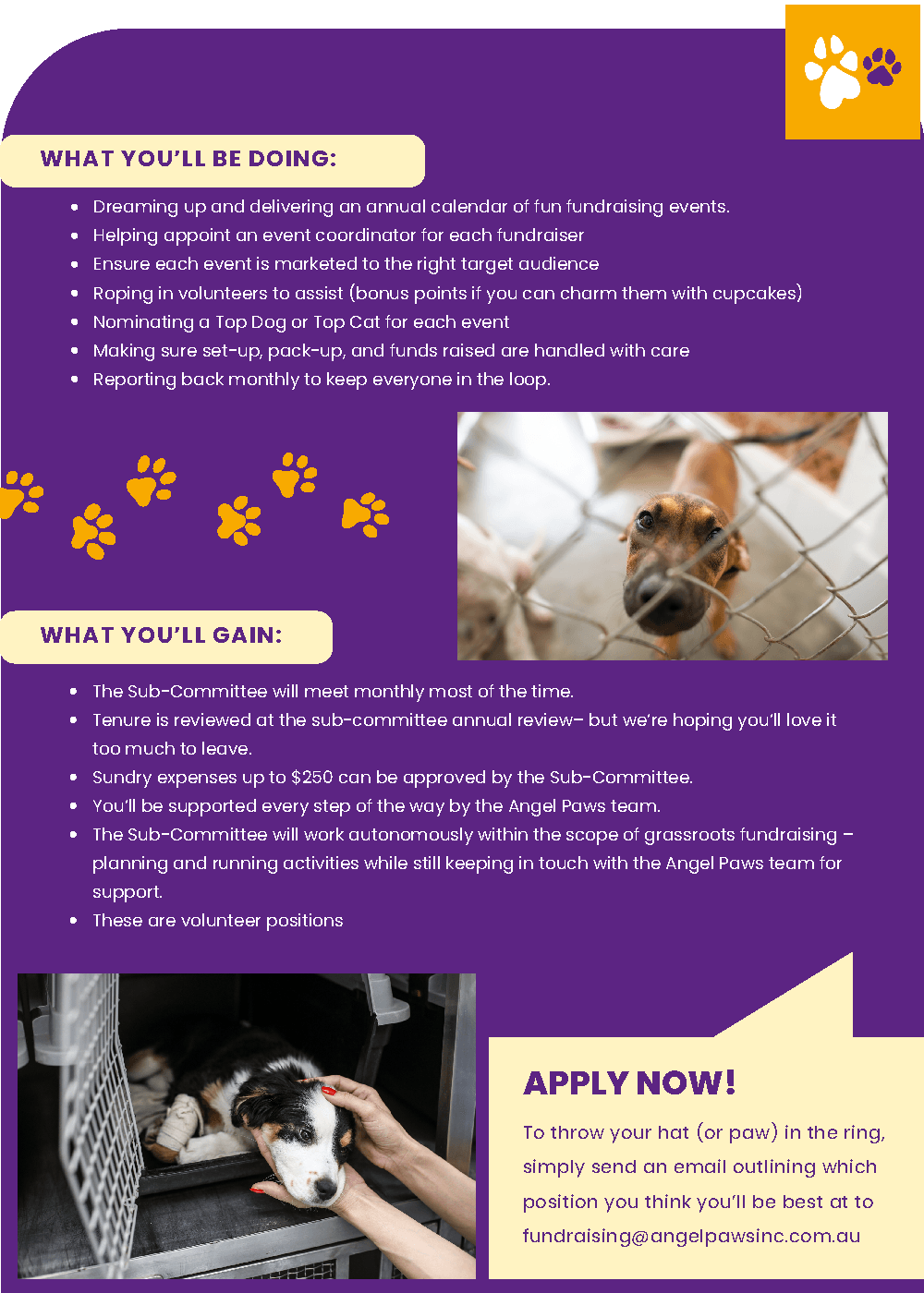 If you have any questions about our specific requirements for volunteers, please email to volunteers@angelpawsinc.com.au.